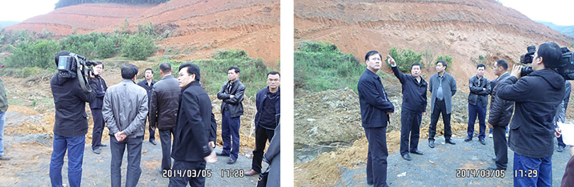 2014年3月5日下午,肇慶市副市長范汝雄、封開縣縣長黃學武一行帶領有關部門領導來到封開縣生活垃圾衛(wèi)生填埋場建設工程施工現(xiàn)場視察工程情況。范汝雄副市長對施工現(xiàn)場進行了查看,做出了一系列工作指導;同時指出,在確保施工進度的情況下,要把質(zhì)量安全放在首位;此刻正處雨季,一定要做好填埋場庫區(qū)的防洪排水工作,防止庫區(qū)邊坡因雨水的沖刷而發(fā)生地質(zhì)災害。
