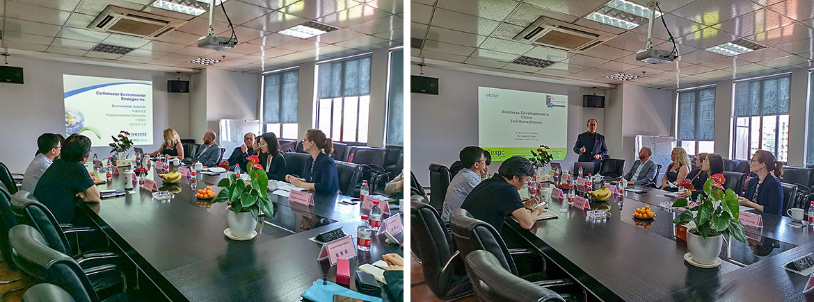 客人也分別介紹了自己公司的情況,Earthmaster業(yè)務(wù)發(fā)展副總裁Amber Flamand介紹該公司是一家專業(yè)的環(huán)境咨詢公司,具有二十余年的發(fā)展歷史,Earthmaster運(yùn)營副總裁Adam Dunn詳細(xì)介紹了公司的主打技術(shù)——PEPSystems植物復(fù)育法及運(yùn)用該技術(shù)成功修復(fù)污染土壤的工程案例。McMillian-McGee總裁Bruce McGee介紹McMillian-McGee是一家專注原位熱脫附修復(fù)技術(shù)的企業(yè),自主研發(fā)了多套專利技術(shù)進(jìn)行污染土壤的原位熱脫附修復(fù),并在全球范圍內(nèi)獲得廣泛使用。最后,博世華團(tuán)隊(duì)分別就植物修復(fù)和原位熱脫附技術(shù)與來訪公司進(jìn)行了交流和討論。