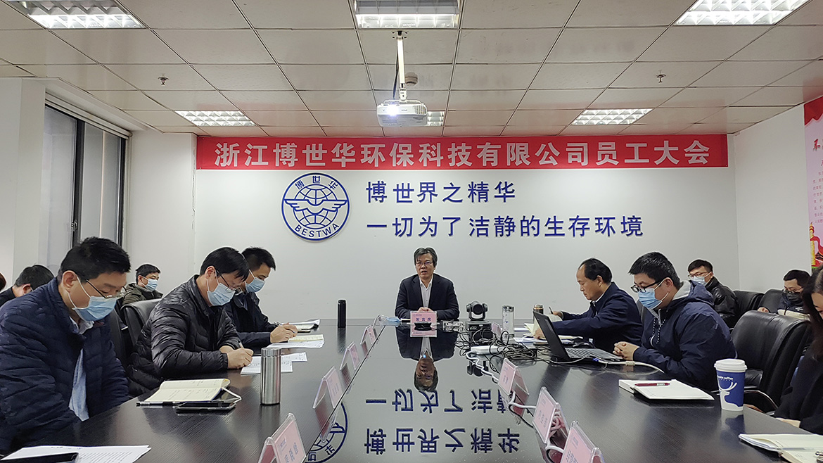 玉鼠呈歡辭舊歲,金牛躍起迎新年。2021年2月5日上午,浙江博世華環(huán)??萍加邢薰?020年度員工大會順利舉行。本次大會為了更好地落實疫情防控工作,積極響應政府的防疫管控措施,大會采用釘釘視頻直播的形式召開,公司常務副總經(jīng)理謝文岳主持了本次會議并代表公司做了2020年度工作報告。