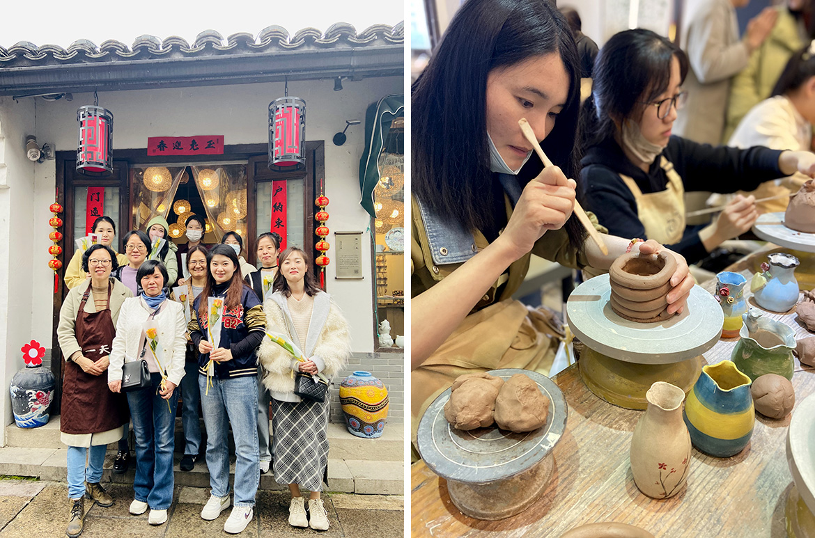 大運(yùn)河貫穿南北,它南越長江,流經(jīng)江蘇、浙江。北越黃河,流經(jīng)魯冀,煙波浩渺幾千里。這是與橫貫東西的萬里長城并稱于世的偉大奇跡。仰望,晴空萬里,京杭大運(yùn)河如飄蕩的碧玉帶,機(jī)動船破浪航行。兩岸,楊柳在迎著春風(fēng)吐翠,水面波光粼粼,古色古香的小河直街人山人海。值此三八國際婦女節(jié),在這個(gè)被“寵愛”的日子里,公司工會組織全體女員工“品運(yùn)河文化,做手工陶藝”活動。忘卻煩惱記錄運(yùn)河沿途的春日美景,親手制作屬于自己的陶藝作品,心情隨春天一同蘇醒。