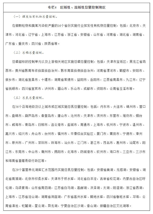 總磷、總氮超標(biāo)水域?qū)嵤┝饔?、區(qū)域性總量控制??偭壮瑯?biāo)的控制單元以及上游相關(guān)地區(qū)要實(shí)施總磷總量控制,明確控制指標(biāo)并作為約束性指標(biāo),制定水質(zhì)達(dá)標(biāo)改善方案。重點(diǎn)開展100家磷礦采選和磷化工企業(yè)生產(chǎn)工藝及污水處理設(shè)施建設(shè)改造。大力推廣磷銨生產(chǎn)廢水回用,促進(jìn)磷石膏的綜合加工利用,確保磷酸生產(chǎn)企業(yè)磷回收率達(dá)到96%以上。沿海地級及以上城市和匯入富營養(yǎng)化湖庫的河流,實(shí)施總氮總量控制,開展總氮污染來源解析,明確重點(diǎn)控制區(qū)域、領(lǐng)域和行業(yè),制定總氮總量控制方案,并將總氮納入?yún)^(qū)域總量控制指標(biāo)。氮肥、味精等行業(yè)提高輔料利用效率,加大資源回收力度。印染等行業(yè)降低尿素的使用量或使用尿素替代助劑。造紙等行業(yè)加快廢水處理設(shè)施精細(xì)化管理,嚴(yán)格控制營養(yǎng)鹽投加量。強(qiáng)化城鎮(zhèn)污水處理廠生物除磷、脫氮工藝,實(shí)施畜禽養(yǎng)殖業(yè)總磷、總氮與化學(xué)需氧量、氨氮協(xié)同控制。