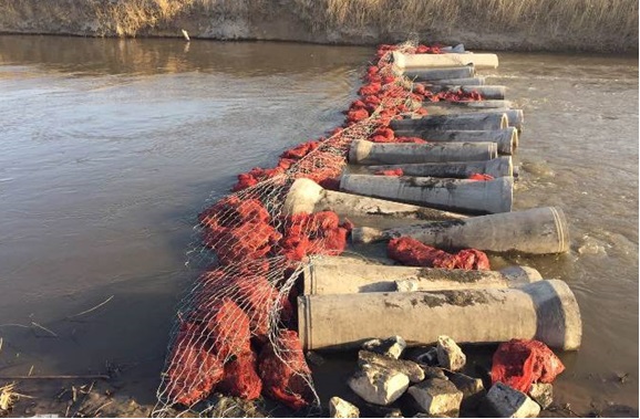 攔截降污。1月18日下午,根據(jù)環(huán)境保護(hù)部專家意見,稷山、河津、萬榮等地汾河沿線全面開展構(gòu)筑水泥管活性炭攔截壩工作。1月18日夜,環(huán)境保護(hù)部工作組到達(dá)運(yùn)城市,連夜沿汾河入黃河口斷面,從下游往上逐點(diǎn)查看了萬榮、河津、稷山、新絳縣汾河水質(zhì)情況和水泥管活性炭吸附壩建筑情況,及時(shí)提出要根據(jù)污染團(tuán)帶遷移情況準(zhǔn)確確定活性炭的投放地點(diǎn)和時(shí)間,最大限度保障吸附效率。19日凌晨,環(huán)境保護(hù)部工作組抵達(dá)事故現(xiàn)場(chǎng),主持召開專題研討會(huì),要求河津和萬榮兩地加固加密吸附壩,及時(shí)更換活性炭,確保污染物在萬榮縣境內(nèi)得到有效控制,入黃污染物濃度控制在0.15mg/L以下。因?yàn)楸奖人p,水泥管應(yīng)按順?biāo)鞣较驍[放并有一定間隔,水泥管上下幾層要交錯(cuò)擺放,這樣可以放置活性炭,而且活性炭的擺放高度要略高于水面。事發(fā)地下游新絳、稷山、河津、萬榮四縣市共筑構(gòu)了36道活性炭、草簾、秸稈等吸附壩,包括4道水泥管為主體的吸附壩,并24小時(shí)值守,防止發(fā)生潰壩事件,同時(shí)定期添加吸附原材料,持續(xù)保障吸附效率。