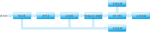 處理要求:出水執(zhí)行《生活垃圾填埋場(chǎng)污染控制標(biāo)準(zhǔn)》(GB16889-2008)中表2標(biāo)準(zhǔn)