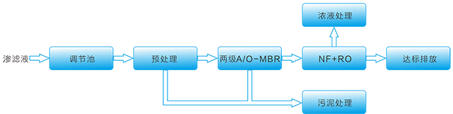 主體工藝:預(yù)處理+MBR(兩級(jí)A/O+UF)+NF+RO